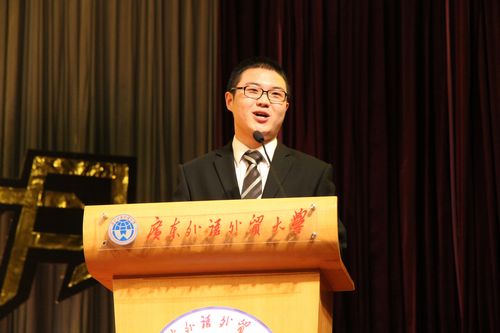 随后,广交会优秀实习生和优秀学习标兵接受了领导们颁发的荣誉证书。这份沉甸甸的荣誉证书不仅是他们一个月辛勤付出的见证,也是他们在广交会丰硕收获的缩影。其中,金融084的姚苏东作为优秀实习生代表上台发言。他认为广交会是一个庞大的机器,只有在无数零件的默契配合下才能正常运转。尽管学子们在广交会起得早,干得累,吃得差,但是每个人都能相互扶持,整个团队也爆发出巨大的能量。忙碌于各个岗位的经贸学子都能用自己辛勤的劳动赢得属于自己的精彩。姚苏东的讲话不时引起台下观众的共鸣。