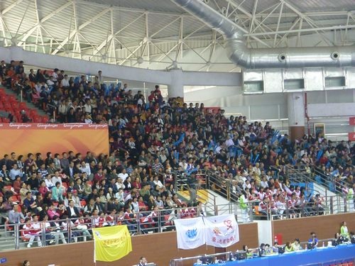 11月18日,广州亚运会女子排球赛预赛在广外大南校区体育馆隆重登场,经贸学院组织起浩大助威队伍,前往赛场,共同感受亚运激情。比赛如火如荼进行着,经贸学子热情助威,为参赛队伍摇旗呐喊,使现场气氛不断升温。