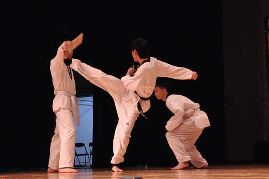 校跆拳道队和校话剧队的精湛表演为观众带来了别样风采。高难度的跆拳道踢腿表演,以及老道幽默的话剧呈现一次次将现场的气氛推向高潮。