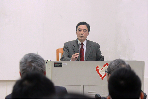 本网讯11月28日晚,曾任吉林大学外国语学院院长的宿久高博士于我校七教110举行了主题为“日本古典文学赏析”的讲座。本次讲座由教师发展中心主办,由张陵老师主持。东语学院日语系的各位老师出席了本次讲座。