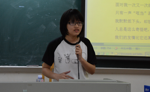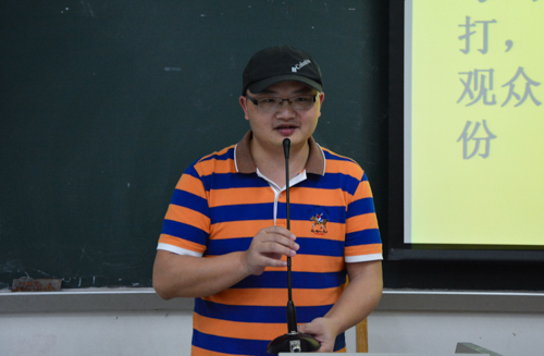本网讯 5月11日晚,广东外语外贸大学第二届广告创意大赛的复赛在教学楼E103举行,来自新闻学院的李淑芳、刘超、蔡卫平、陈国昌老师和劲仔厚豆干陈冲经理担任了本次复赛的评委,以劲仔厚豆干为广告创意对象,来自软文组、平面组和视频组的选手依次展示了他们的参赛作品,八仙过海,各显神通。