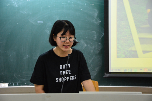 常说好戏在后头,但视频组的前两组同学展示完后,就都获得了评委的好评,可谓是“好戏”在前头。第一组《豆干叠叠乐》是由陈安琪、李筠和张楚雯组成的视频组的作品,这个广告视频融入了武林对决的元素,将叠叠乐游戏与吃厚豆干相结合,由本组队员演绎和拍摄,当第一组队员完成他们的作品展示后,陈国昌点头并且大声评价道:“这个广告视频我看了不仅十次,但无论看了多少次,都觉得非常好看,从情节设置、演员选用到音乐选择都很合理,演员演技很传神,让我们非常清楚地看到了产品信息。”而李淑芳则比较欣赏由陈淑云、黄乐怡和任六艺组成的视频组第二组的作品《我就喜欢厚道的你》,视频开始时一个涂着红唇的只有下半张脸的女生在说“他们说,你不够帅,没有白皙的肌肤。他们说,你不够酷,方方正正,没有特色”,让消费者认为那个女生是在说他的爱人,但后来发现其实她说的是豆干。“第一,你们这个广告选取的主题很有魅力,很多人都喜欢‘厚道’,所以这个广告的受众很广。第二,你们的广告的‘你’,一语双关,既是恋人,又是豆干。第三,这是感性诉求合理性诉求结合的典范,‘厚道’既是女孩的情感表达,而在产品中又是功能型的。”李淑芳评论道。