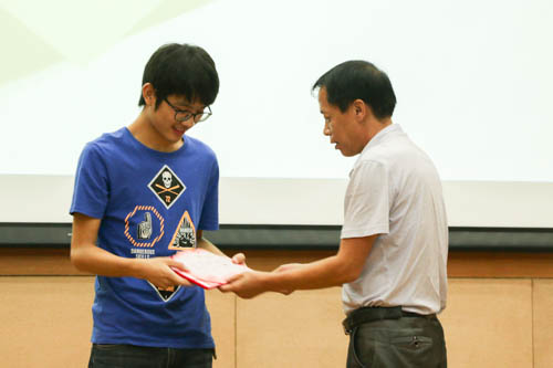 嘉宾为一等奖选手何宇鹏同学颁奖