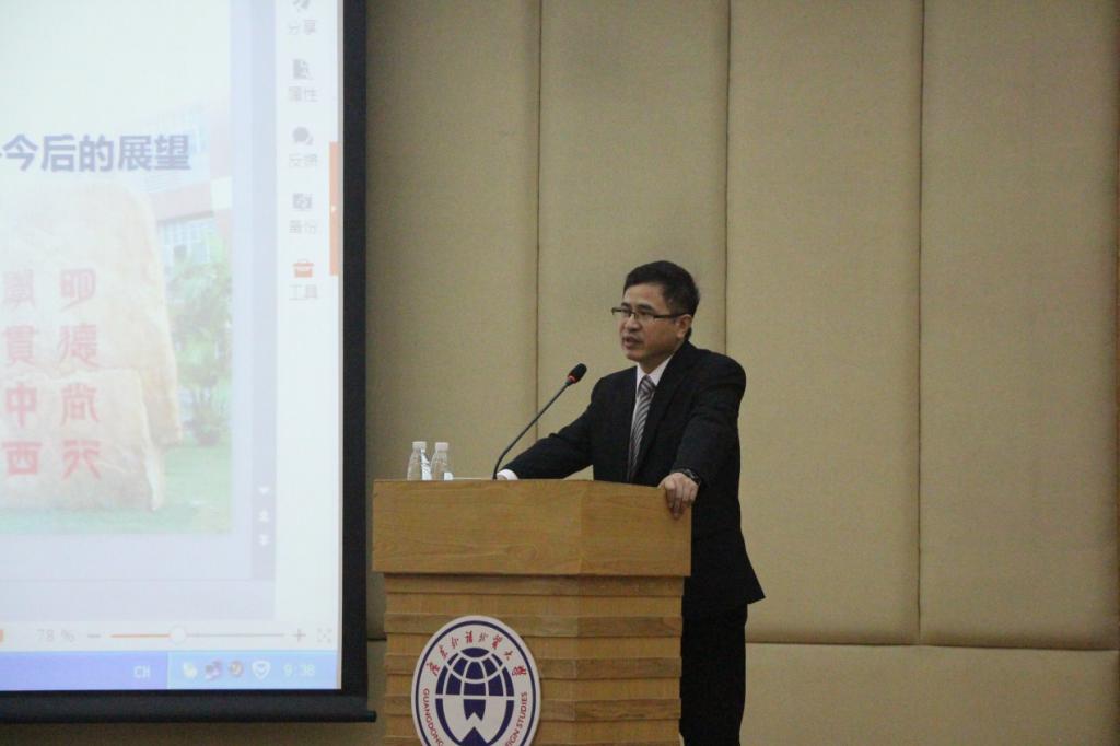 讲座伊始,东语学院院长陈多友给小森阳一教授捐赠了讲座纪念品。小森阳一教授此前也多次作客广外,而这次围绕2015年日本参议院委员会表决通过的新安保法案,从日本国民(主权者)进行的具体斗争以及今后日本政治、中日关系走向等方面展开了精彩分析。
