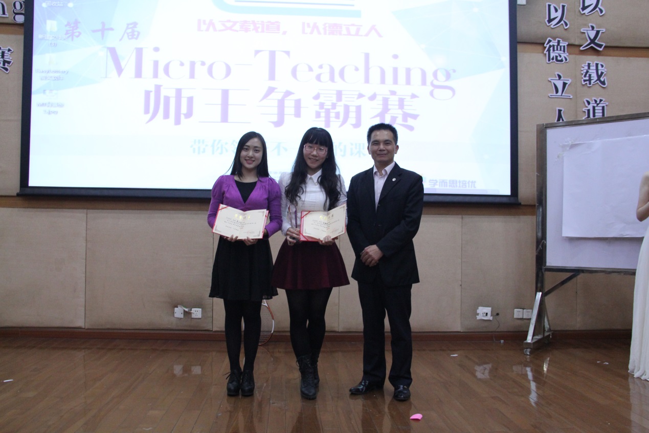 最终,组合选手——林嘉丽和吴子宁获得冠军,英语教育学院第十届Micro-Teaching师王争霸赛决赛成功落幕,但正如在场的一个学生所说,“师王之路永不止步,舞台上的光彩要在现实延续辉煌,成就师王的梦想要在现实中唱响。”