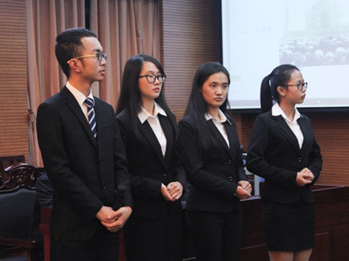 本网讯2015年12月9日,第十届“法眼看世界”学术风采大赛决赛在大模拟法庭正式拉开序幕。出席本次比赛的嘉宾为法学院团委书记陈宇,评委老师为王树春、杨嵩棱、修文辉、叶昌富、常廷彬和张爽。本次比赛中,参赛队伍首先进行为时6分钟的论文展示环节,然后接受评委老师提问,并在三分钟内回答。