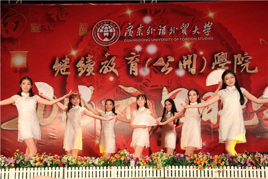 接下来,8位充满朝气的校园歌手以一首《向快乐出发》拉开了晚会的序幕,紧接着,艺术团舞蹈队的女生们身着白色旗袍,手持白色折扇,和着优美的音乐,为大家带来了中国传统音乐与现代街舞的融合之作——舞蹈《咏春》。罗艳老师的歌伴舞《祖国之恋》,清亮澄澈的嗓音,温馨动人的旋律,感染了现场每一个人。武术协会的同学为现场观众带来了刚柔并济的武术表演《中华魂》,展现了习武少年的一身正气和中国武术的博大精深。外语系的音乐剧《凝聚每份爱》,表演者或说、或唱、或跳,以丰富的演出形式演绎了理想、信念和爱。节目一个赛过一个,晚会高潮迭起。