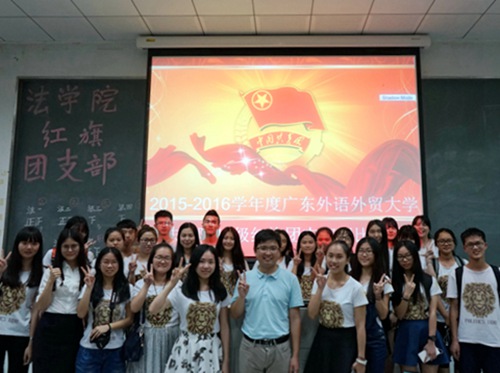 本网讯2016年4月9日晚,法学院15级学子齐聚在教学楼G207进行15级红旗团支部评比活动。参与本次评比活动的评委有法学院团委书记陈宇老师以及16位大众评审。