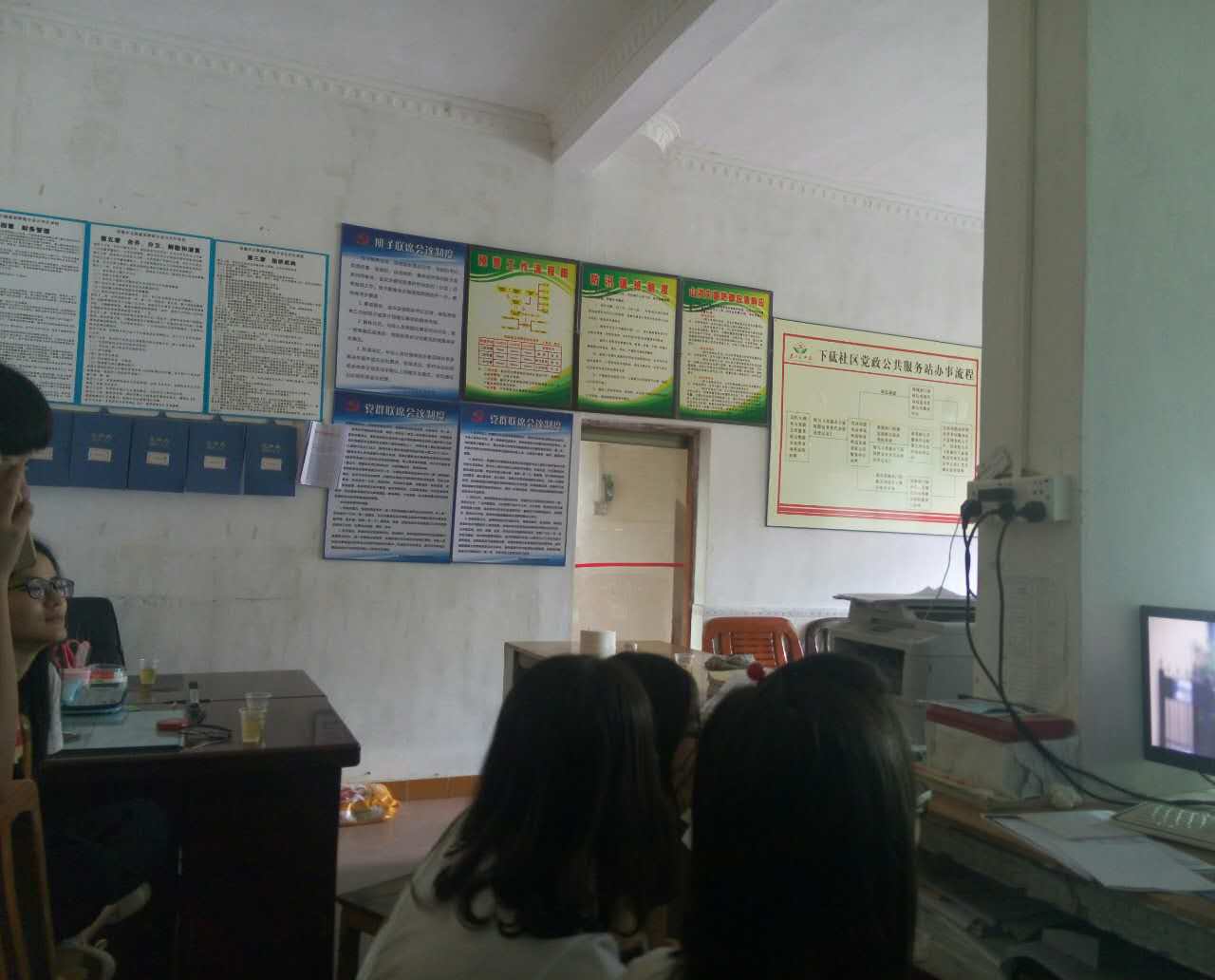 一方面,政府挂职的同学们分别到达了计生办,司法办和扶贫办等办公室。各个办公室的主任对他们的到来表示热烈的欢迎,并积极的向他们介绍工作的情况,指导他们的工作。队员们主要负责录入资料,整理文件等工作,对此他们表现出极大的工作热情和认真负责的工作态度。其中,计生办的队员们在刘主任的指导下积极讨论了农村家庭妇女和留守儿童的相关问题,对农村的现状有了更加深刻地认识。