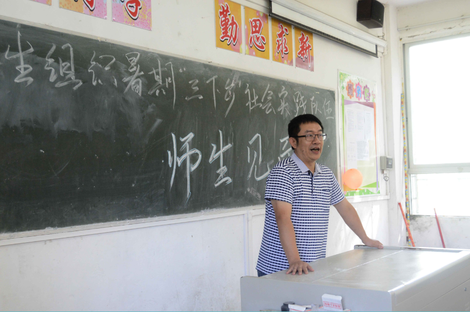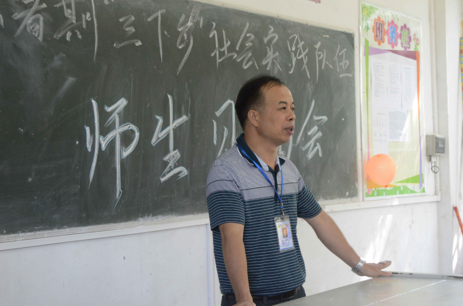紧接着邱武聪校长上台发表讲话,他首先介绍了岭背镇的民风以及岭背中学的历史背景与学风,基于当地学生英语基础较差的情况,邱武聪校长鼓励队员与当地学生多交流以便利用外语优势培养学生的学习方法和信心。最后邱武聪校长希望队员们能克服生活环境带来的不便,帮助学生好好学习以及鼓舞更多的同学参与到这次三下乡的课程当中。