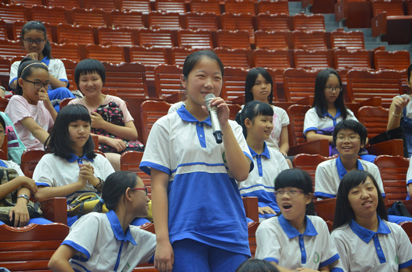 经过了5个小时的舟车劳顿,终于顺利到达梅县外国语学校的One for all的队员们,匆匆吃过午饭,来不及洗尽一路的浮尘与疲惫,就要准备开始与同学们的初次见面会。看到已在会场等待队员们75位可爱的学生们,队员们就把疲惫都抛到了九霄云外去了。