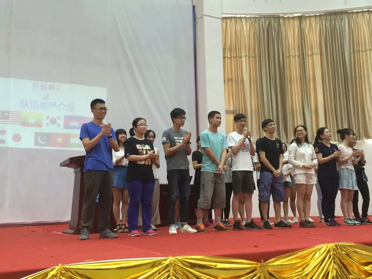 合唱过后,all forone的队长林泽惠,以及两位副队陈欣、李楠依次上台讲话,介绍了三下乡活动期间的具体课程,强调了活动期间师生的安全问题。