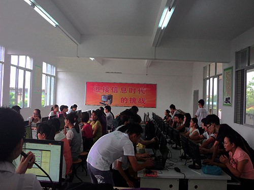 ppt基础培训原本定于九点开始,但九点还没到,马宁镇中心小学的电脑室已经坐满了前来学习的来自马宁镇各小学的老师。在当前的先进的信息技术覆盖面越来越广的潮流下,电脑也已经走入了各家各户,登上了讲台,甚至代替了原来的黑板。而ppt作为一种重要的课堂展示软件,成为越来越多老师中意的必要教学工具。俗话说:“活到老学到老”,到场的四十几位乡村教师怀揣着学习的热诚,希望能在我们的电脑技巧培训课堂上跟上信息技术的潮流,更好地在课堂上传道解惑。而萤光守梦服务队来自于广东外语外贸大学思科信息学院,时常与信息技术打交道。对于在信息技术方面教导乡村教师,他们充满自信,但同时也明白自己代表着思科信息学院,深知自己肩上的责任。