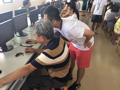 本网讯 2016年7月11日,广东外语外贸大学思科信息学院逐光盛夏三下乡服务队在梁村镇中心小学的下乡工作仍在继续进行,梁村镇的教师培训也于今日正式拉开了序幕。本次的教师培训意在帮助老师掌握幻灯片的制作,为他们以后的教学工作提供新的教学方式,同时将相关信息技术传递下去。