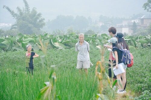 随后小组到达农田进行调研,很快,他们遇到了一对中午还在地里干活的老夫妇。老夫妇告诉调研组,他们出去打工多年,现在老了回来种马蹄。采访时,老夫妇亲切地给调研组讲述了怎么种马蹄,帮助调研组对马蹄的种植技术有了更深一层的了解。