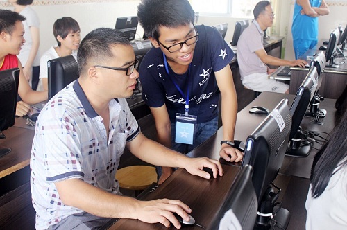 本网讯2016年7月12日,广东外语外贸大学思科信息学院梦缘晨星三下乡服务队既给岗坪中心小学的学生带去知识,分享快乐,同时,他们还到岗坪镇初级中学给教师进行为期2天的培训,把先进的教学理念与软件技术传递给当地的老师,帮助老师通过使用多媒体提高教学效率及调动学生的积极性。