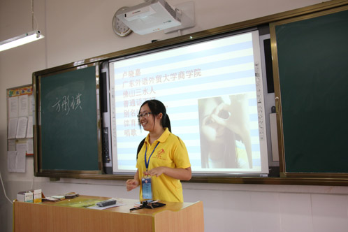 团学服务队队长方彤琪其次发言,她提到,希望能够教给廊田中学的同学们一种全新的思考与学习方式,在这次“三下乡”暑期社会实践活动中与同学们成为共同学习、共同交流、共同相处的很好的朋友。