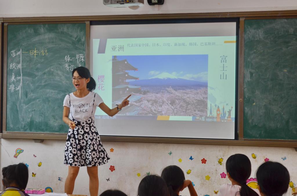 今天实质上是队伍正式开展教学工作的第一天,义教组的许多成员之前并没有教学经验,为了做好教学工作,不少义教组成员一直待在教导处里专心备课,直到深夜。在经历昨天的见面会和班歌教学后,小朋友们也与队员们逐渐熟悉了起来,而队员们也没有让小朋友们失望。“旅行世界”以世界旅行为主题,让小朋友们在趣味“旅行”中学习世界地理知识。除此之外,还有“汉字变形记”“变废为宝”“掌控篮球”等充满趣味的课程。