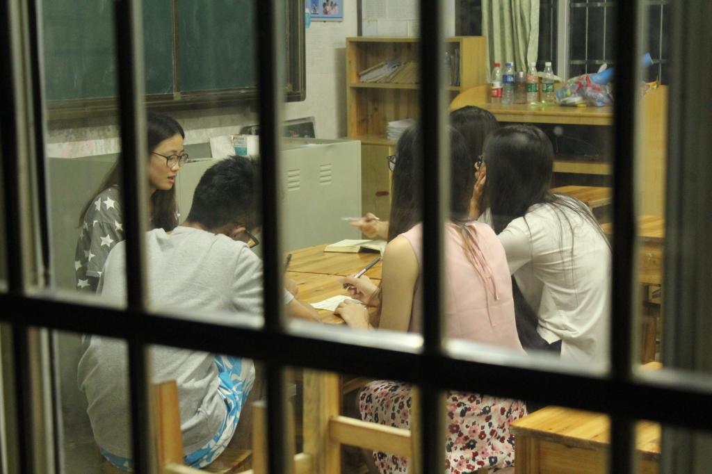 2016年7月13日凌晨12点多,教室的灯光依旧明亮,透过窗户,我们可以看到调研组员们在挑灯夜战,进行激烈的讨论,整理资料和数据。