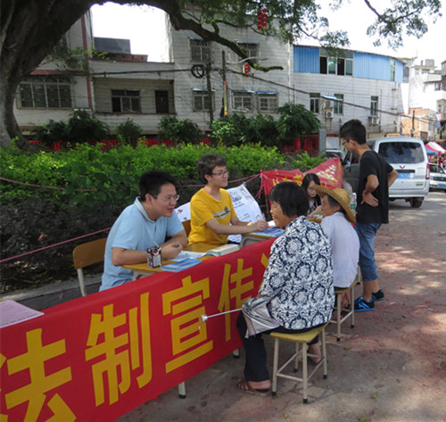 尽管一开始的普法工作遇到些不顺利的境况,存在天气炎热、人流不足、语言不通等问题。但队员们仍然拿出十分的耐心坚持宣传普法活动。普法现场,许多镇上的老人家很骄傲地说自己不会被骗,但是仍有一些老人家谈起了辛酸的被骗过往。有位老人家说起自己的皮肤病,因为相信电视上的广告,花去不少钱但并没有任何起色,还去了附近的小医院,也始终没有取得效果,最后去了大医院,仅仅一百多元就彻底治好了。还有位老人家谈起自己在九十年代的时候,因为假药,被骗去了一千一百多,因此哭了七天的故事。老人家说起这段过往的时候还一直十分自责,步履蹒跚低头责骂以前的自己。