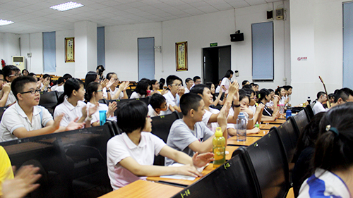 本网讯2016年7月15日晚,由英文学院Firefly 6.0三下乡服务队主办的“梁开好声音”歌唱比赛正式在梁开中学拉开帷幕。主持人陈博老师风趣幽默的开场白引得了阵阵哄笑,随后初赛开始,参赛选手按班级顺序依次上台清唱两分钟,虽有选手紧张到忘词,但现场观众都通过热烈的掌声给予他们支持和鼓励。