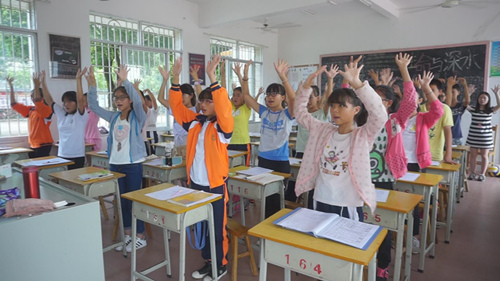 这个世界上有很多和我们不一样的人,有的人可能听不见,有的人可能看不见。队长唐菲艳为同学们精心地准备了一节阳光手语课,以电影“听说”带大家认识手语,老师以一种串联简单词的方式带着大家轻松学会简单手语,让大家以后能和聋哑人进行简单交流。最后,老师教大家怎样跳《感恩的心》,把这节阳光手语课推进高潮。我们是幸福的孩子,要懂得感恩父母,感恩老师,感恩同学,一首《感恩的心》唱出心中想说的话,常怀一颗感恩之心,这个世界才会充满美好与感动。