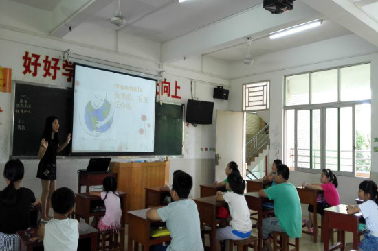 九点到了,小朋友们早已端正坐好,教学组的小老师们也准备就绪,开始新一天的课程。高年级同学上科普知识课,低年级同学则上趣味英语课。不论是高年级还是低年级同学,都有着求知若渴的态度,认真听老师们讲课。低年级同学们上的趣味英语活泼有趣,老师和小朋友也不时互动。而高年级同学在科普知识课上,也明白了许多生活中常见但却让人摸不着头脑的现象。