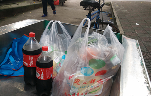 后勤组载食材的三轮车
