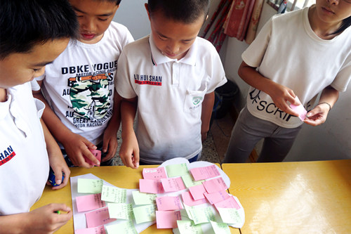 孩子们在便利贴上写下自己的想法