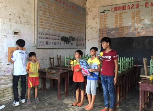 经过文宣组前两天的实地考察,再结合天气原因,文宣组组员决定在纪家祠堂举行趣味运动会。下午三点,全体队员好小朋友们在纪家祠堂集合,小朋友们自由报名参加比赛项目。比赛分为两个阶段,第一阶段有乒乓球赛和拍气球比赛,两边比赛同时进行,乒乓球赛的小朋友们经过淘汰赛和积分赛,最后决出了一二三名,第一名的奖品是书包,小朋友获得奖品后非常高兴。拍气球比赛的场地是现场画出来的,但小朋友们依然热情参与,在空中拍出一道道美丽的气球弧线。