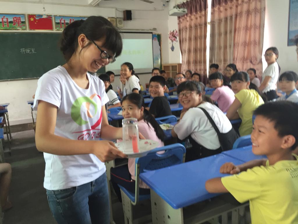 一改初见时的拘谨与紧张,义教组成员不断地对自身进行调整,小朋友们也慢慢适应了各位老师上课的方式,使义教工作进展愈发顺利。在今天上午的第一节实验课——《我们都是科学家》上,林婉星老师给大家展示了有趣的小实验,将物理上抽象的知识生动具体地呈现给小朋友们。愉悦之余,小朋友们也主动吸收了新知识,开阔了新视野。