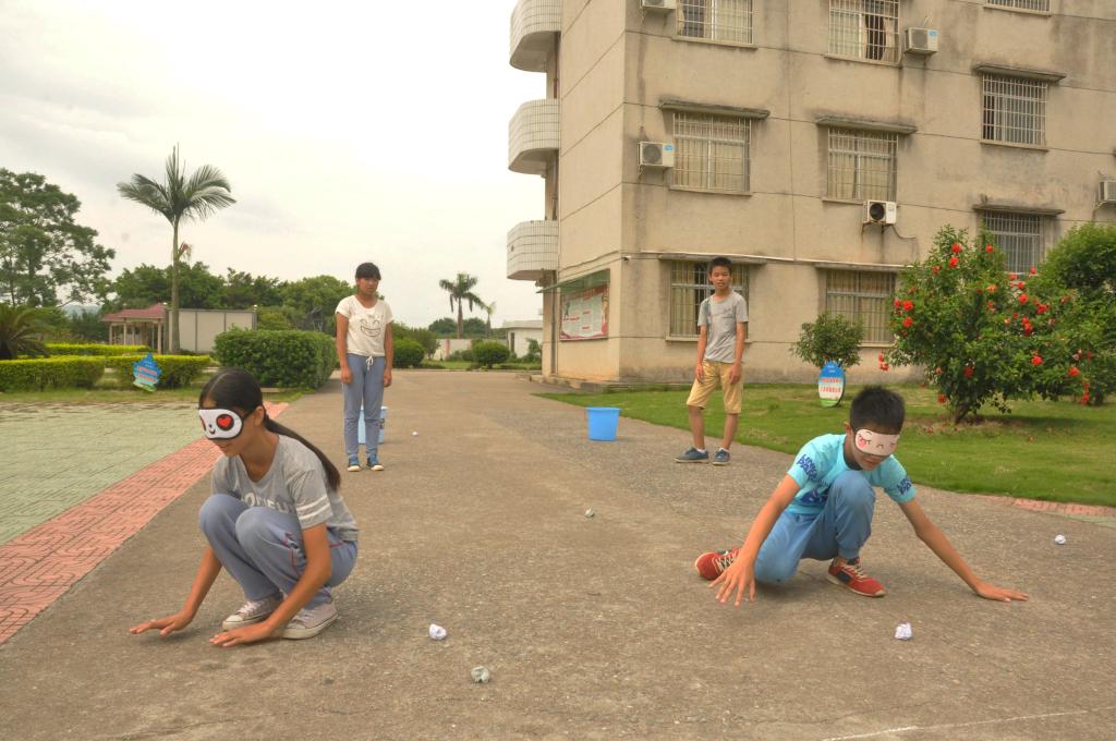 紧接着小组游戏和个人游戏的好戏齐齐上演,“过河搭桥”、“足球保龄”、“盲人捡纸团”、“我和气球有个约会”、“我有我的距离感”、“背球一战”同时开始。为了在有限的时间内收集更多的印章,每个小组都鼓足了劲,积极投入比赛,甚至不惜重复参加同一游戏直到赢得该游戏的印章。同学们之间的合作变得更加紧密,求胜心也被进一步激发。尽管游戏中可能会出现些许的责备和埋怨,但是更多的是相互之间的鼓励和欢呼。