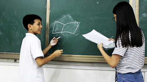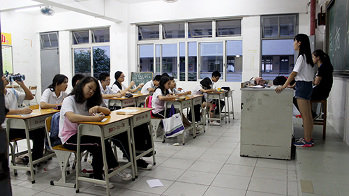 本网讯2016年7月18日晚,梁开中学的五个夏令营班级各自在教室里开展单词拼读比赛。从12号开始,老师就将需要背诵的单词下发到每位同学手里,同学们平常有空就拿出来朗读、背诵。经过好几天的准备,同学们表示对比赛胸有成竹,但也有部分同学对自己缺乏信心,担心自己拿不到好名次。