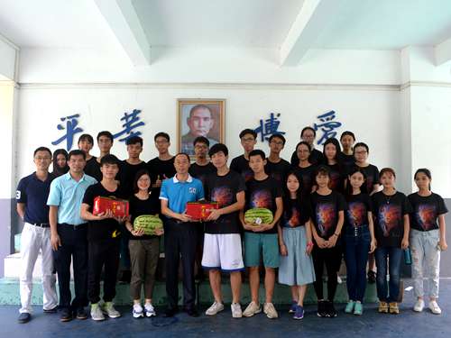 早上11点,商英学院院长郭桂杭、党委副书记张林茂、指导老师万东方以及16级辅导员莫小俊亲临博爱小学。同学们精心准备了国学诗朗诵,兴奋地给领导们表演。此外,同学们还活学活用,把手工课堂学会的徽章送给了领导们,感谢商英学院多年以来对博爱小学教育的支持。之后,领导们亲切地与Sunkids队员们交谈,询问队员们在博爱小学的具体生活情况。队员们坦诚地说教学活动中难免会有疲劳,但是同学们的可爱往往让大家瞬间释怀。炎炎夏日,领导们给队员们送了西瓜和清凉饮品。在此,Sunkids全体队员衷心感谢商英学院领导们的体贴和关怀!