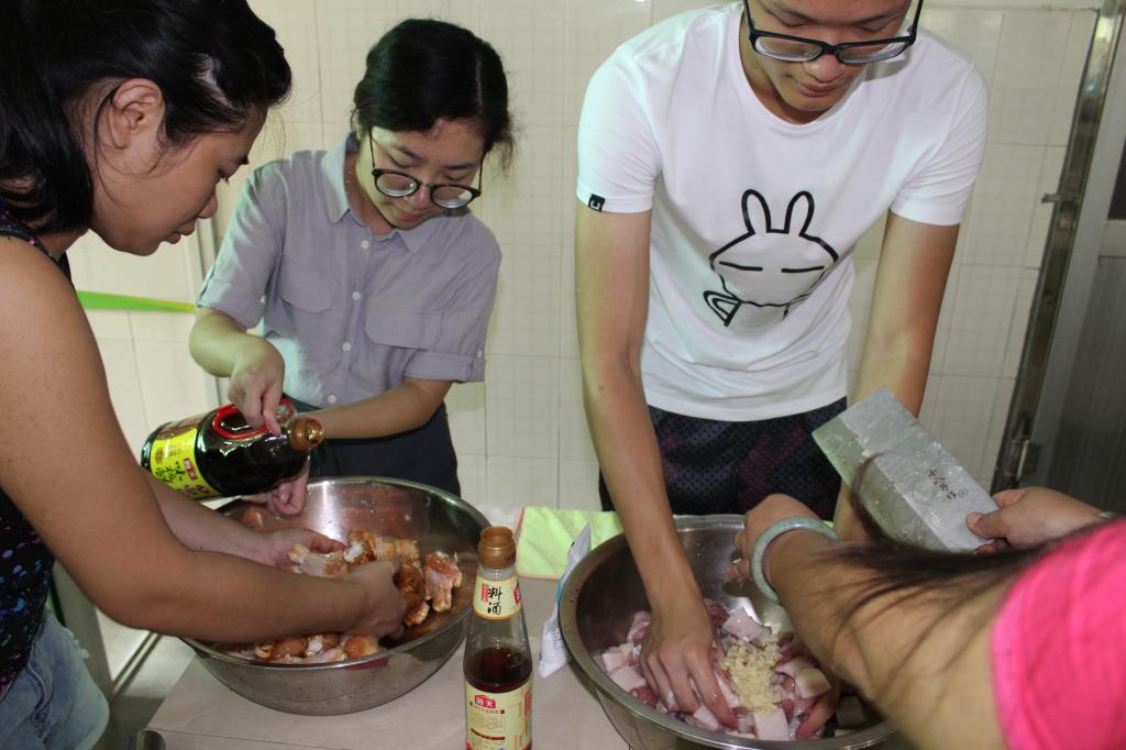 中饭便是后勤组大展身手的时候了。“巧妇难为无米之炊。”一开始,由于对食堂器具的不熟悉,后勤组历经千辛万苦仍不尽如人意。出现米煮不熟等问题。但我们仍坚信他们是最伟大的后勤组!果然,经过实践,后勤组开始渐入佳境,我们的好日子到来了。7月13号中午的可乐鸡腿与土豆炒肉,牢牢地抓住每一个队员的胃,让人称赞不绝。在热腾腾的米饭上加上少许酱油与青菜,加上大口的鸡腿肉,简直美味。这后勤,真的很可以。