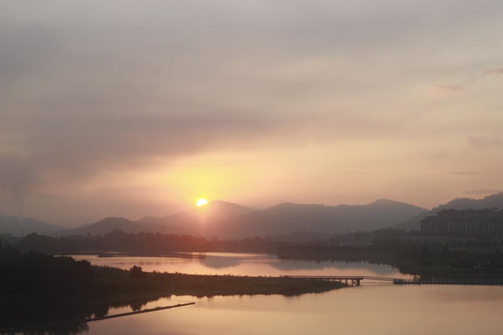 大家轻手轻脚地登上教学楼五楼,似是不忍心惊扰还在沉睡中的村庄。静静等待间,天渐渐破晓,欣喜渐渐爬上队员们的脸庞,这种大家一起等待的感觉是多么美妙。不一会儿,东方天际浮起一片鱼肚白,似乎象征着全明星服务队的队员们冲破困倦,点燃了激情。看着“寒妈”水库在晨光的照耀下闪着粼粼波光,队员们的脸上洋溢着幸福与感动,纷纷和身边的队友分享自己的感受。九天的集体生活和工作让全明星服务队全体队员变得更加团结,每个队员都充分认识到团队合作的重要性。今天我们在一起欣赏了日出东方短暂的美,留下的是一段共同拥有的永恒的记忆。
