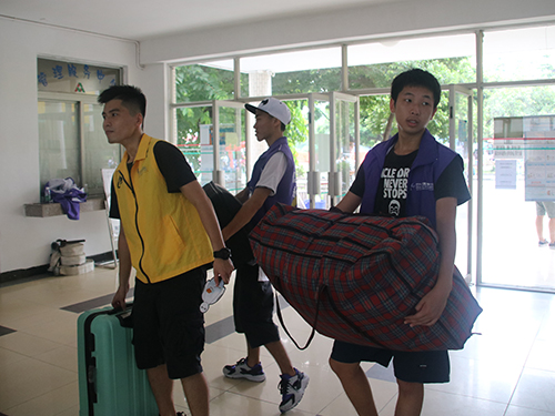 上午7点多,志愿者们陆续到达各自的工作岗位开始一天的工作。校道上张贴着极具信息特色的cookie路标,指引新生到达宿舍注册点。身穿紫色马甲的志愿者们热情地帮助新生们搬运行李,耐心地解答家长们的疑惑,获得了一致好评。