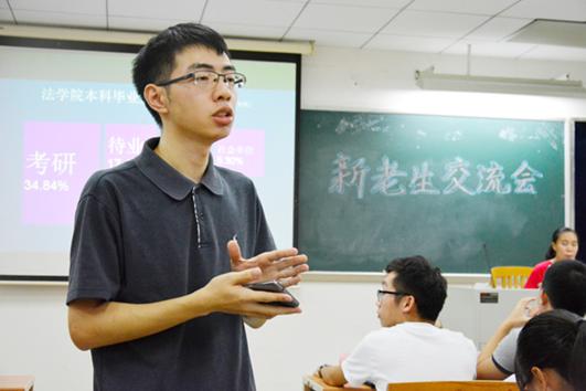 本网讯在这丹桂飘香的九月,大一新生们在军训的洗礼中走来,怀着忐忑与期待翻开大学的第一篇章。面对新的生活,同学们心中不免有迷茫、困惑甚至忧虑。为了替同学们解惑,为其大学四年征程指引方向,法学院于9月21日晚在教学楼E205举行了新老生交流会。