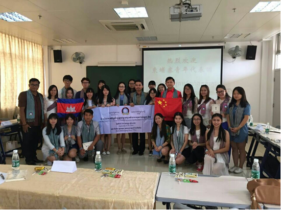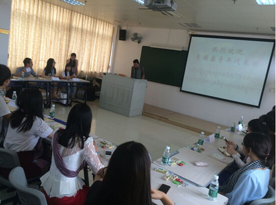柬青年联合会负责人SAMNANG先生上台发表讲话,介绍了柬青年联合会的基本情况,并祝福中柬友谊万古长青,获得了台下师生阵阵喝彩。会后,中柬双方的代表都依依不舍的相互交换名片,小礼物。在柬语同学们的祝福中,踏上了归程。