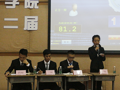 辩论赛的气氛极为严肃,观众们专心地欣赏着台上的“唇枪舌战”。在提问环节中,正方四辩要求对方辩友说出自己的队名,场上的氛围瞬间轻松下来。随之而来的却是极为严谨的连续发问,精彩之至。