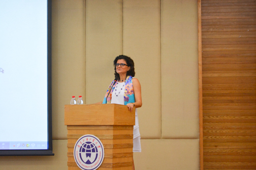 接下来,艾古丽女士在演讲中介绍,华南地区对意大利语语言的兴趣不断上升,而正意大利语已然成为我国学习人数第四多的外语。同时,艾古丽女士还对参与了意大利建筑设计金奖展翻译工作的我校学生表示欣赏与感谢,并为他们颁发荣誉证书以作纪念和鼓励。