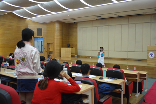杨晓敏副院长首先向各位莅临开幕式的来宾致欢迎辞并简要介绍了将会在接下来的语言周中举办的活动。