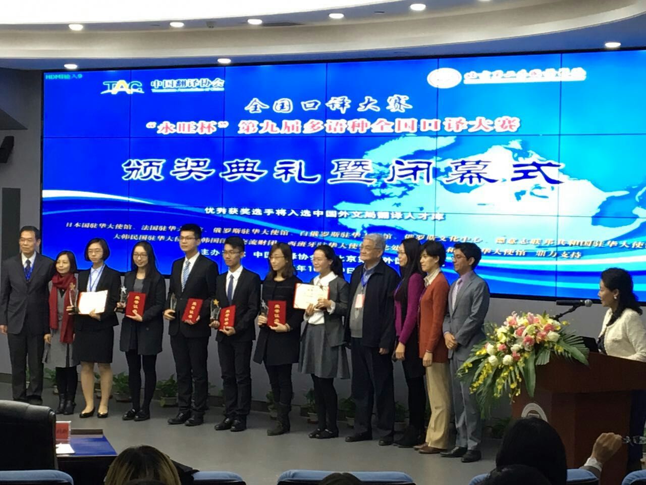 本次大赛的评委由来自中共中央编译局、外交部翻译室、中国社会科学学院、中央电视台等权威机构的资深西班牙语专家担任。评委们纷纷肯定选手们的表现,还给出了很多宝贵的意见。说到此次参赛的收获,方晓燕同学表示,除了收获了一个相对还不错的成绩以及能够有机会跟来自全国其它院校的优秀选手交流,更让她激动和受益是的来自评委们的点评。决赛评委之一中国社会科学院荣誉学部委员、中国拉美研究领域的权威专家徐世澄老师在点评时就给选手们提了很多宝贵的专业性意见,希望选手们在以后的实践中能把翻译的一些细节处理得更好。针对此次比赛试题中多次出现的专业性词汇和拉美地理概念,他强调,要想成为一名优秀的译员,光靠好的语言水平是不够的,还需要对中国以及西语国家的政治、经济、人文等有全面的了解。