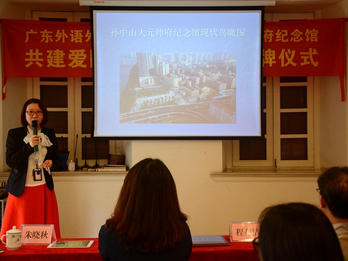 朱晓秋为青马班学员进行了一场主题讲座,讲座为学员介绍了大元帅府的前世今生。孙中山大元帅府前身为广东士敏土厂,在之后的变迁中成为孙中山组建革命政府的办公场所,也是他晚年革命的重要基地之一。朱晓秋还从大元帅府设计者的中国情缘、建筑特色以及历史影像等方面讲解了大元帅府与孙中山的联系。纪念馆一直坚持通过史料还原历史,由于很多史料来自于国外需要翻译,因此朱晓秋也鼓励同学们努力学习英语,将来做出自己的贡献。