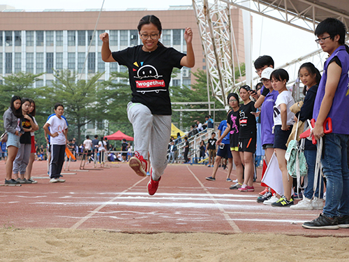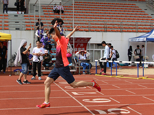 三级跳远部分也是引人入胜。比赛还没开始就有不少的人开始了试跳。每次试跳都可能是一次调整状态的机会。单脚跳、跨步跳、跳跃及最终的双脚落入沙坑,每一个动作的张力以及动作间的连贯性对运动员们来说都是关键。而对第一步的开始起跳选择也是一个考验运动员的部分,起跳太早又会降低自己的成绩,起跳太晚又会犯规取消成绩。试跳阶段结束,正式比赛开始,伴随着看台上观众们的加油鼓劲声,比赛迅速进入高潮。最终,软工1503赖广权夺得男子的第一名,计算机1604吴丹琪喜获女子第一名。