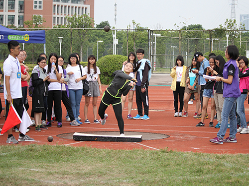 比赛开始前,运动员早已来到赛场,认真预投热身运动。比赛时,他们怀着必胜的信心,坚定地投出手中沉重的铅球,画出一道丽的弧线。其中男子铅球比赛的选手成绩相差比较大,现场时时传来惊叹的欢呼,最终软工1503班的彭盛旺同学以8.21米的成绩赢得男子铅球比赛的冠军;而女子铅球比赛的选手实力相当,比赛相当激烈,最后计算机1605的陈晨同学以6.71米的成绩摘得女子铅球比赛军。