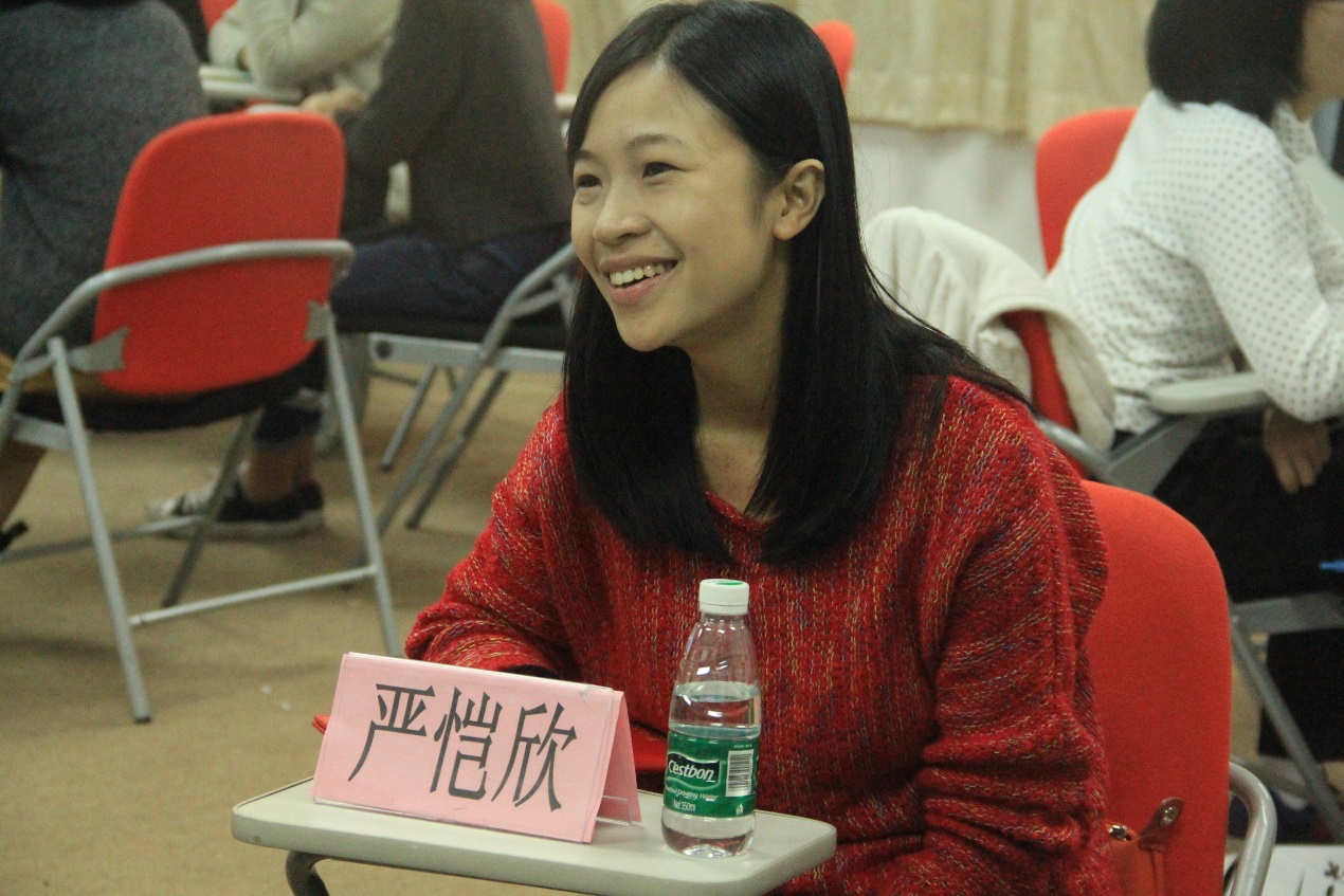 D组的严恺欣师姐分享了自己曲折的求职经历,话题也紧扣着教师这个职业展开。她提到,用人单位更看重一个人的能力而英教学子的实力与师范院校的学生丝毫没有差距。她也鼓励同学们提高英语能力,尤其是练好口语,端正态度,积极地融入社会。最令人印象深刻的是她提到:“当你真正融入教师这个行业,你会有很大的成就感。”