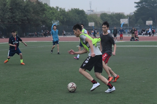 比赛伊始,14国贸队率先夺球,进攻球员陈晓东以一个漂亮的远射将球踢向对手球门,无奈被对方守门员拦住,进攻未能得手。在开场第四分钟,14国贸队的队员控球巧妙,在对方几名猛将的层层围攻下,14国贸队队员一个侧身出脚,带球绕过对手,突破层层防守进入禁区,以默契的配合完美传球,最终一个长射将球踢出,只可惜球被守门员抵挡在外。在接下来的比赛中,14国贸队展开猛烈攻势,而15国贸队的守门员成功守住球门3次,赢得场外一片鼓劲喝彩声。直至上半场比赛结束,比分仍未有所突破,但双方球员出色的控球能力和默契的配合皆让在场观众叹为观止。