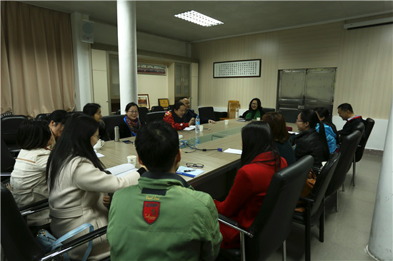 本网讯2017年3月9日下午,西语学院在四教会议室召开“一带一路”教职工会议。院长杨可、党委书记方华、副院长刘齐生、副院长杨晓敏、云山学者刘丽芳教授、萧净宇教授及各语系老师均出席本次会议。本场教职工会议由杨可院长主持,会议以座谈会形式进行。