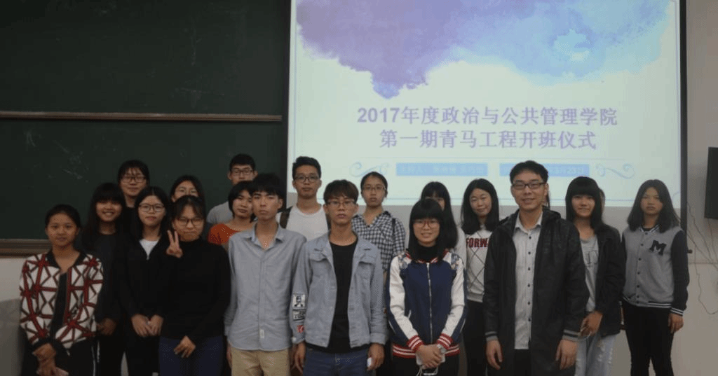 2017年3月23日下午3:00,政管学院青马班开班仪式在南教学楼C507正式举行。本次开班仪式有幸邀请到了校团委龙飘飘老师、政管学院辅导员白志华,以及14级行政管理(涉外公共关系)的国家奖学金获得者邓慧敏同学,台湾义守大学交换生周盈同学和美国哥伦比亚大学交换生骆紫妍同学担任嘉宾。现场几乎座无虚席,同学都表现出积极热情的态度,期待着青马班的开班仪式。
